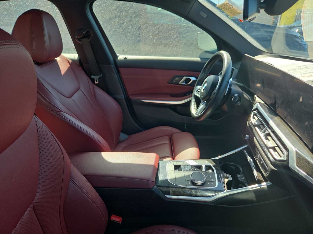M SPORT PACKAGE Please note that the standard tire for this package is a performance tire, Shadowline Exterior Trim, Aluminum Rhombicle Anthracite, M Steering Wheel, Rear Spoiler, M Sport Package (337), Variable Sport Steering, Without Lines Designation Outside, M Sport Suspension, Aerodynamic Kit, Wheels: 19 x 8 Fr & 19 x 8.5 Rr M Double-Spoke, (Style 791M), Bi-color jet black, Tires: 225/40R19 Fr & 255/35R19 Rr Perf Run-Flat, Increased Top Speed Limiter, PREMIUM PACKAGE Wireless Device Charging, Enhanced USB & Bluetooth® Plus Smartphone Integration, Comfort Access Keyless Entry, Lumbar Support, BMW Curved Display w/HUD, Heated Steering Wheel, Heated Front Seats, DRIVING ASSISTANCE PACKAGE rear crossing traffic warning, collision prevention and speed limit info, Lane Departure Warning, Active Blind Spot Detection, Park Distance Control, Frontal Collision Warning, city collision mitigation, Active Driving Assistant, REMOTE ENGINE START. BMW 330i xDrive with Brooklyn Grey Metallic exterior and Tacora Red interior features a 4 Cylinder Engine with 255 HP at 5000 RPM*.