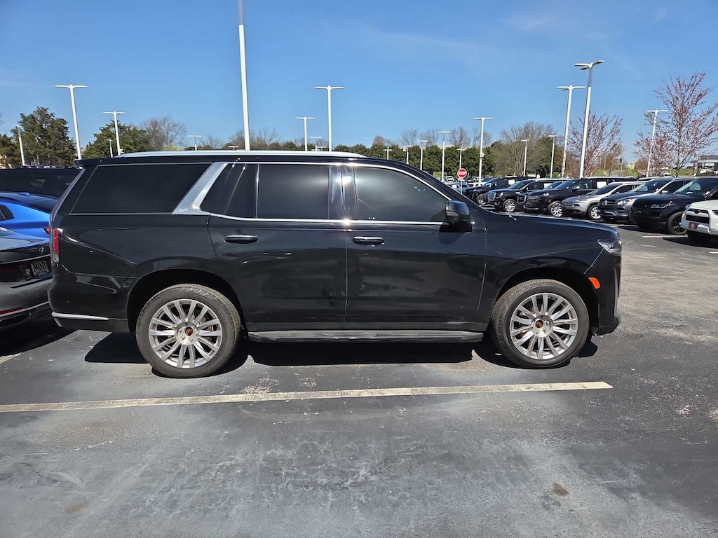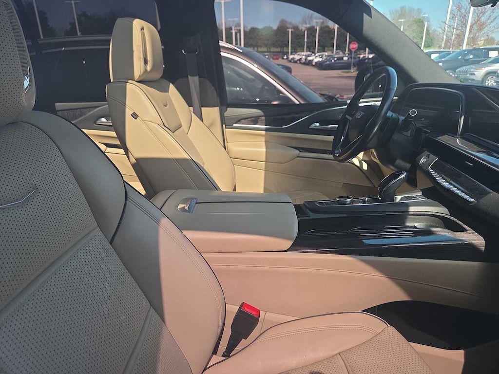 OLED INFOTAINMENT EXPERIENCE WITH NAVIGATION AM/FM/SiriusXM with 360L with 16.9 diagonal color information display (displays and controls navigation, music and all features and functions of the vehicle), personalized profiles for each drivers settings, Natural Voice Recognition, Phone Integration for Wireless Apple CarPlay®/Wireless Android Auto® capability for compatible phone, Near Field Communication (NFC) mobile device pairing, Connected Apps and Teen Driver (STD), ENGINE, 6.2L V8 WITH DYNAMIC FUEL MANAGEMENT Direct Injection and Variable Valve Timing, includes aluminum block construction (420 hp [313.2 kW] @ 5600 rpm, 460 lb-ft of torque [623.7 Nm] @ 4100 rpm) (STD), TRANSMISSION, 10-SPEED AUTOMATIC electronically controlled with overdrive, tow/haul mode and tap up/tap down shifting (Most vehicles built on or after 6-7-2021 with a V8 engine will have (NSS) Not Equipped with Automatic Stop/Start, which removes Automatic Stop/Start, Engine control stop/start disable button and its content.) (STD). Cadillac Premium Luxury with Black Raven exterior and Parchment with Jet Black accents interior features a 8 Cylinder Engine with 420 HP at 5600 RPM*.