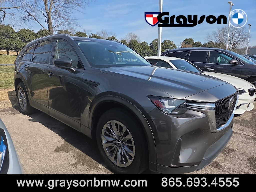 Leather Seats, Third Row Seat, All Wheel Drive, Power Liftgate, Heated Driver Seat, Back-Up Camera, Keyless Start, Cross-Traffic Alert, Apple CarPlay®, WiFi Hotspot, Blind Spot Monitor, Lane Keeping Assist, Smart Device Integration, Rain Sensing Wipers, Adaptive Cruise Control Rear Spoiler, Sunroof, Rear Air, Turbocharged, Onboard Communications System. Mazda CX-90 3.3 Turbo Preferred Plus with Machine Gray Metallic exterior and Black interior features a Straight 6 Cylinder Engine with 280 HP at 5000 RPM*.